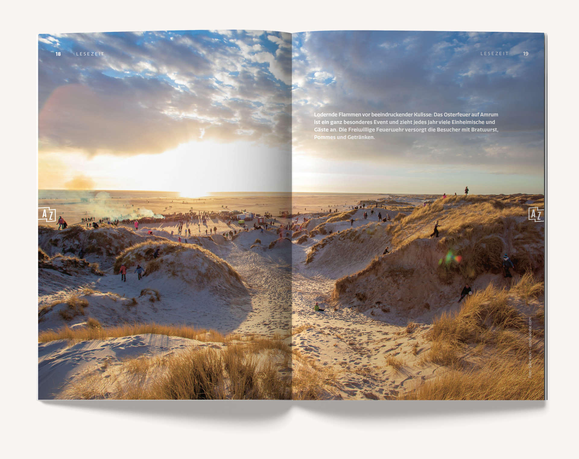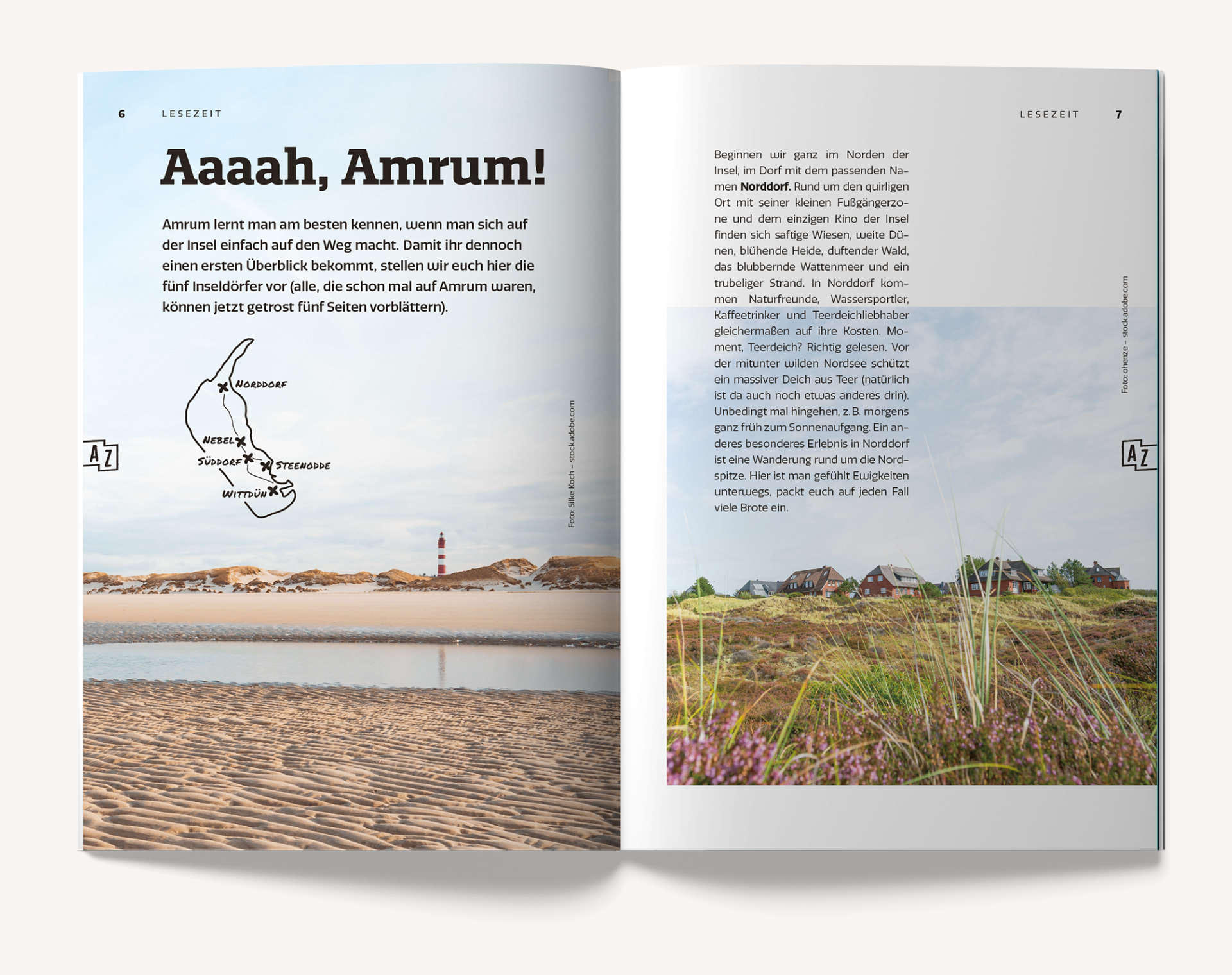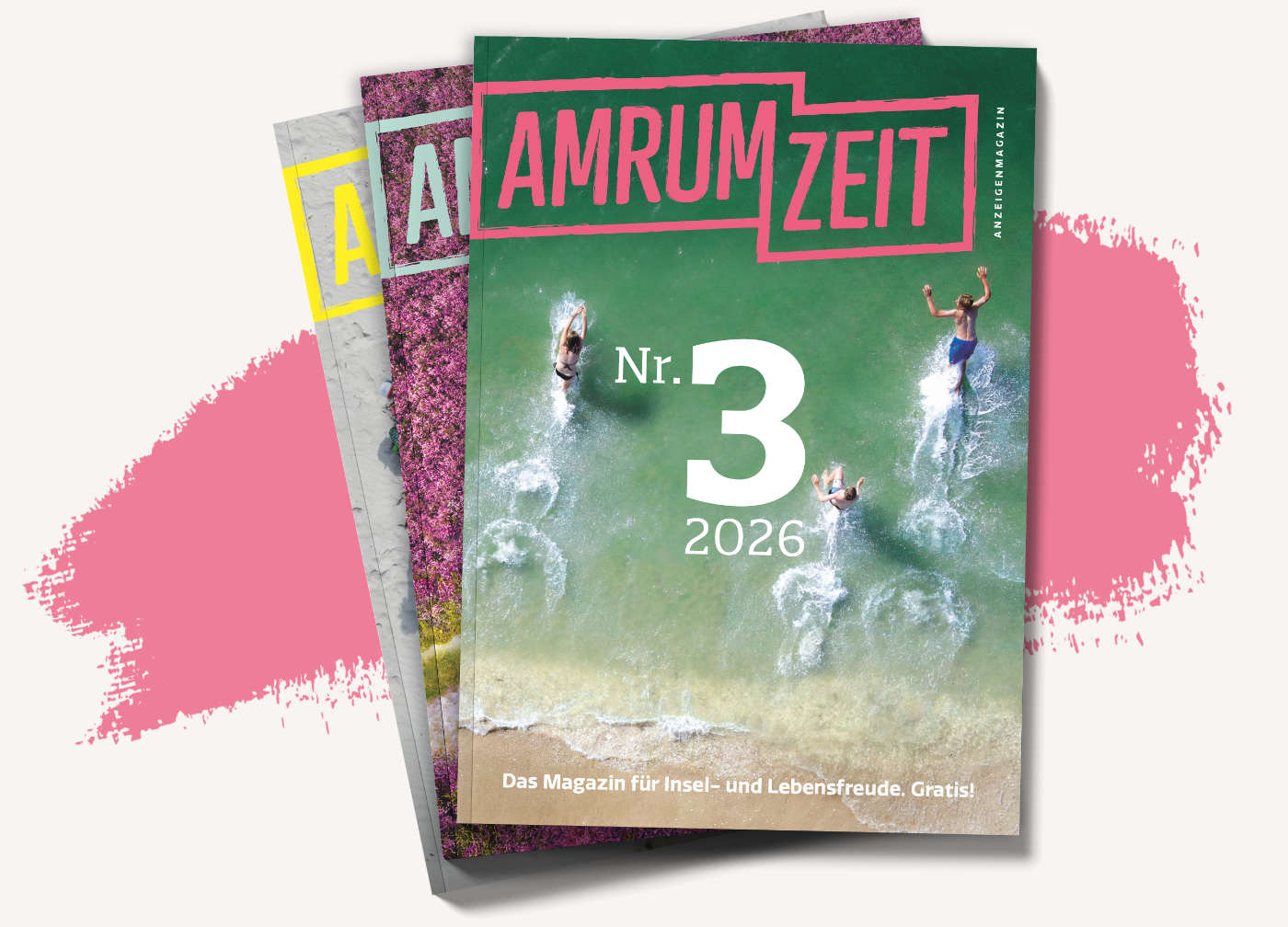 AMRUMZEIT erscheint jährlich neu und liegt im handlichen Format (148 × 210 mm) und einer Auflage von 16.000 Stück kostenlos auf Amrum aus – immer griffbereit für Gäste und Einheimische.