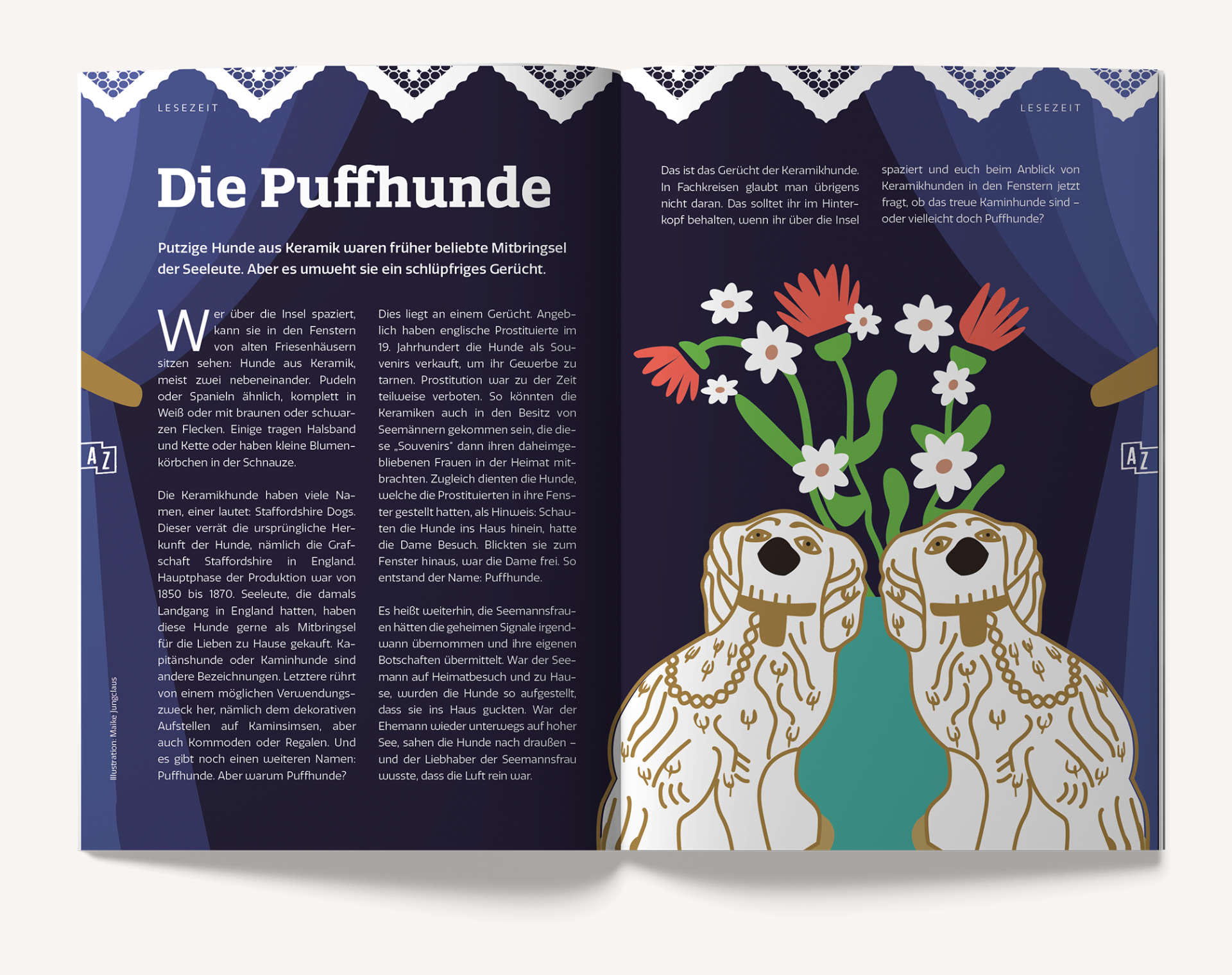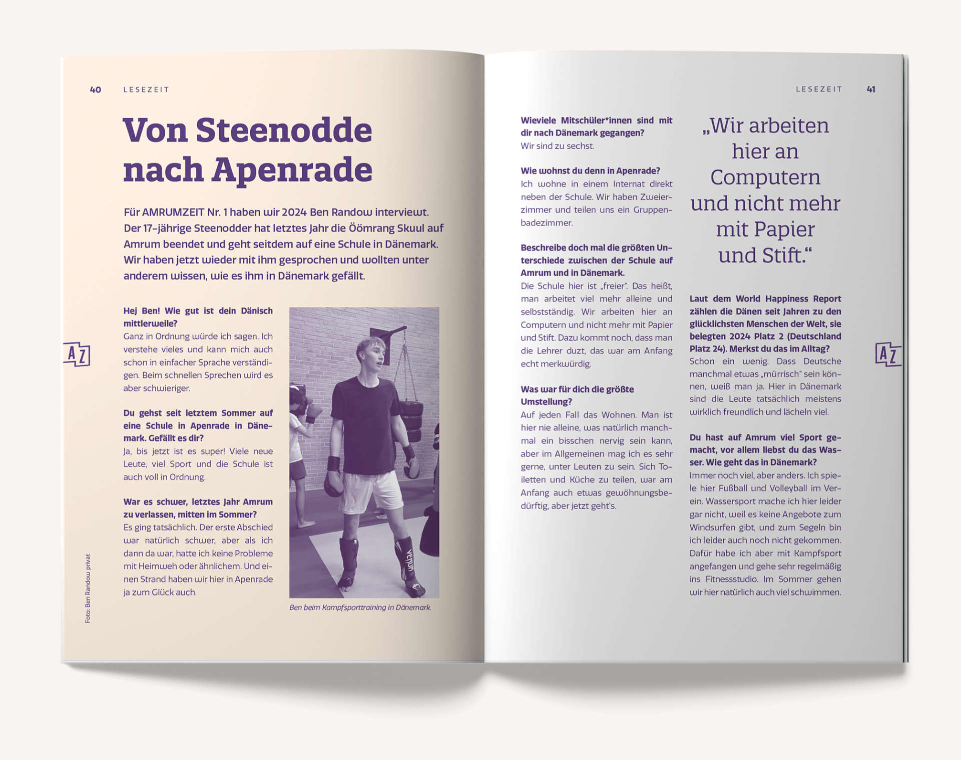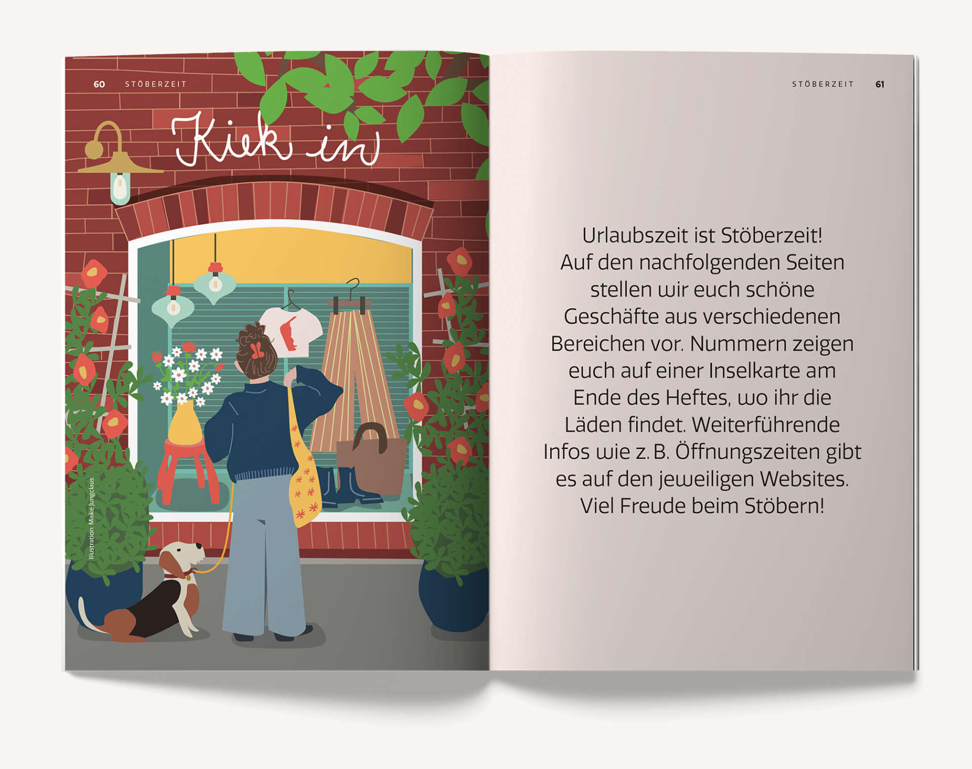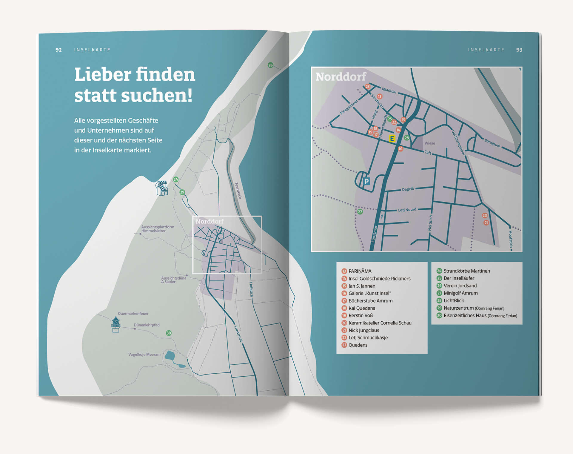 Geschäfte und Unternehmen aus verschiedenen Bereichen präsentieren sich im Heft und liefern den Amrumer Urlaubsgästen Inspiration für ihre Zeit auf der Insel. Ergänzt wird das Magazin durch spannende Berichte, persönliche Geschichten und interessante Interviews.